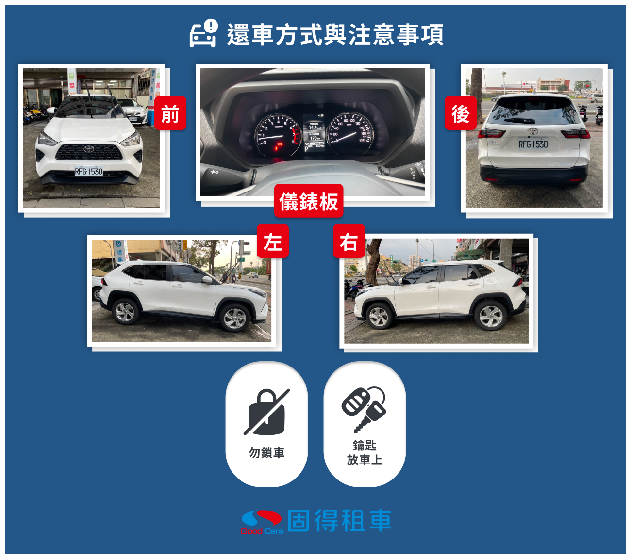 5.車輛照片若未拍照上傳,若有發現損傷及損壞,租車人須負擔全額費用。